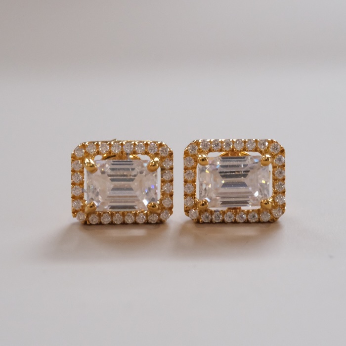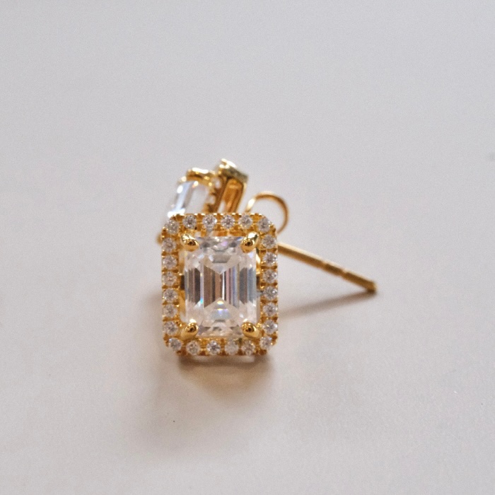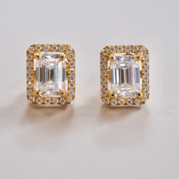Stud Halo Emerald Moissanite